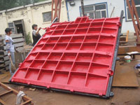 主要由闸框、闸板、吊座及紧闭斜铁等零部件组成。为克服以往钢门易锈蚀的缺点,闸框、闸板全采用铸铁组成,其中闸框又由上横梁、下横梁、左直梁、右直梁组成。为了制造、运输、安装方便,闸板一般根据其大...